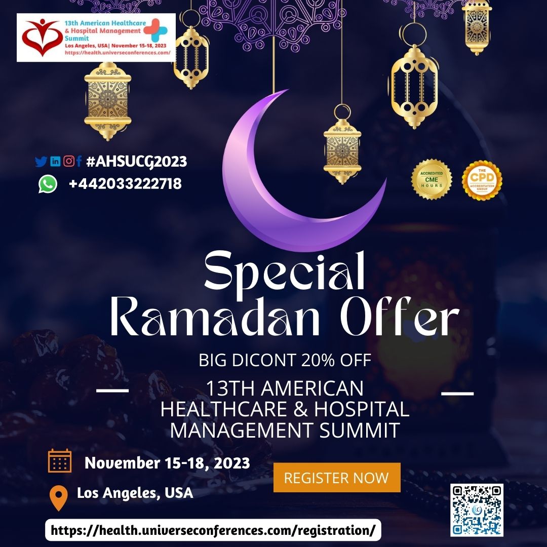 We cordially invite you to attend the “13th American Healthcare & Hospital Management Summit; (13AHSUCG2023),” which will be conducted from November 15-18 as a hybrid event in Los Angeles, USA, and electronically, in the wake of the 11 prior-Healthcare conferences’ tremendous success. The primary focus of the conference will be “Connecting Leaders in Healthcare Transformation and Bringing Learning to Life, Together toward Building Quality for a Safer Healthcare & Hospital Management.”