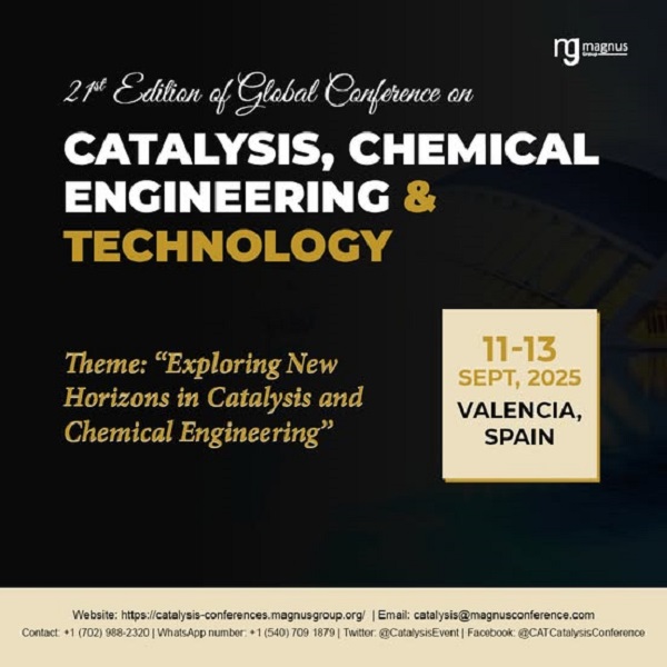 Get ready to explore the cutting edge of catalysis and chemical engineering at the 21st Edition of the Global Conference on Catalysis, Chemical Engineering & Technology (CAT 2025)! Hosted in the vibrant city of Valencia, Spain, from September 11-13, 2025, this Catalysis Conference 2025, themed “Exploring New Horizons in Catalysis and Chemical Engineering,” promises to deliver a rich tapestry of insights and innovations.