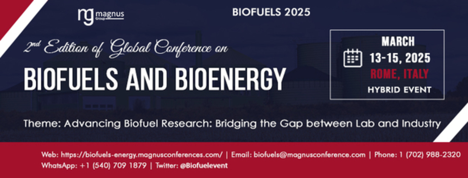 The upcoming 2nd Edition of Global Conference on Biofuels and Bioenergy, affectionately known as Biofuels 2025, is poised to be a pivotal event for professionals and experts in the biofuels and bioenergy sector. Scheduled to take place from March 13-15, 2025, this conference will offer a hybrid experience, allowing participants to join either in person at Rome, Italy, or virtually from anywhere in the world.