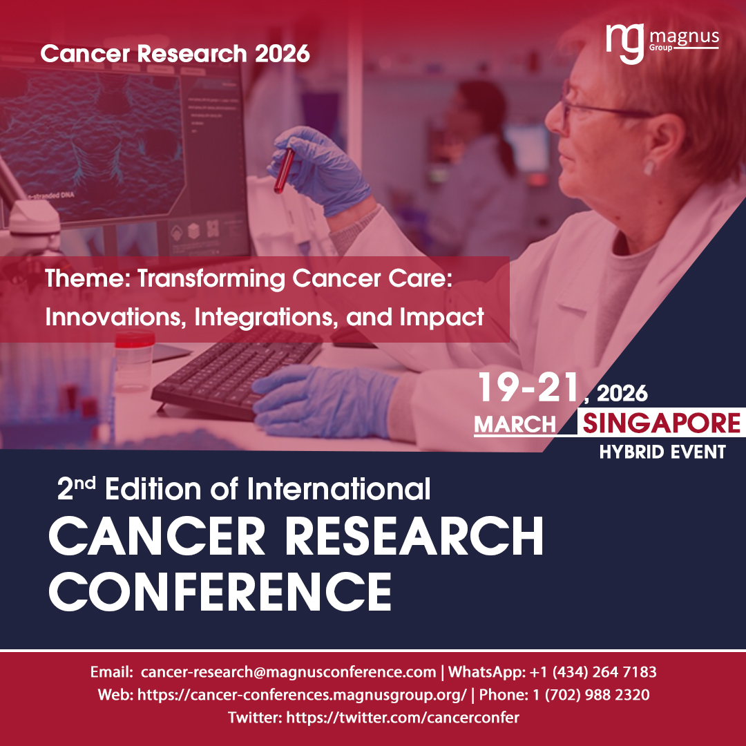 The 2nd Edition of International Cancer Research Conference (Cancer Research 2026) will take place from March 19-21, 2026, in Singapore and online, offering a premier platform for scientists, clinicians, healthcare professionals, and industry leaders to exchange insights on groundbreaking advancements in oncology. Centered around the theme “Transforming Cancer Care: Innovations, Integrations, and Impact”, the conference will emphasize cutting-edge research, technological innovations, and integrative approaches to cancer treatment.