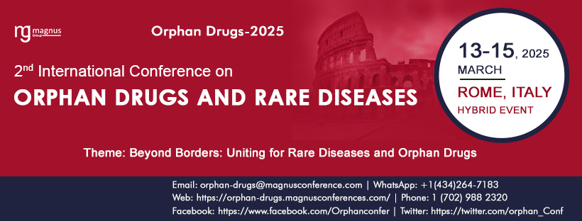 We cordially invite esteemed colleagues worldwide to participate in the highly anticipated 2nd International Conference on Orphan Drugs and Rare Diseases, aptly named Orphan Drugs Conference 2025. Scheduled from March 13 – 15, 2025, this distinguished event will unfold in the vibrant city of Rome, Italy, offering a hybrid experience with both onsite and online options for attendees.