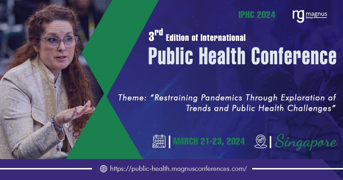 Step into the future of Public health Magnus Group is honoured to invite you to the 3rd Edition of International Public Health Conference (IPHC 2024) in Singapore and Virtually which is an Hybrid Event held on March 21-23, 2024. Attending the Public Health 2024 conference is an important investment for anyone interested in public health.