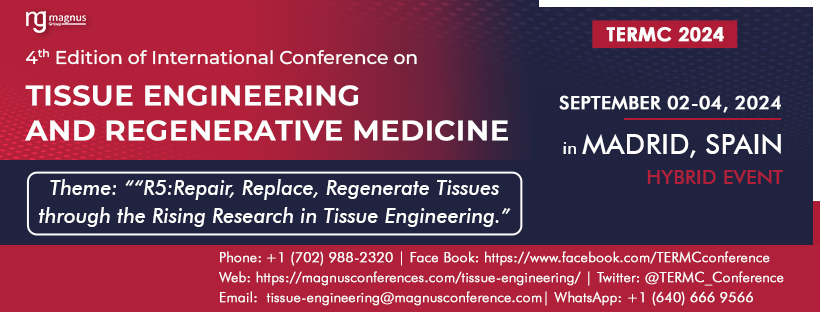 Join us with immense excitement as Magnus Group welcomes you to the astonishing “TERM C 2024: “4th edition of International Conference on Tissue Engineering and Regenerative Medicine” in Madrid, Spain. Save the date for September 02-04, 2024, and participate either in person or virtually.