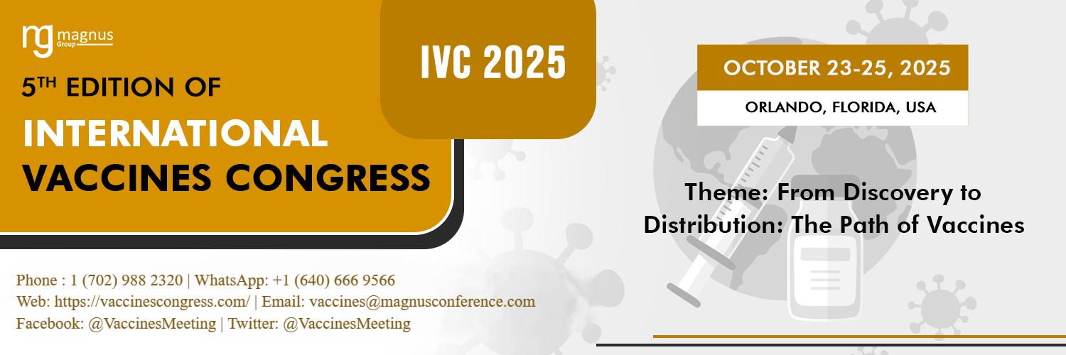 Prepare to immerse yourself in the 5th Edition of the International Vaccines Congress (IVC 2025), taking place from October 23-25, 2025, in the vibrant city of Orlando, Florida, USA! This highly anticipated International Vaccines Congress 2025 will offer a unique hybrid format, seamlessly blending onsite and online experiences to maximize global reach and participation. Dive deep into the latest advancements and transformative trends in vaccine science under the theme: From Discovery to Distribution: The Path of Vaccines.
