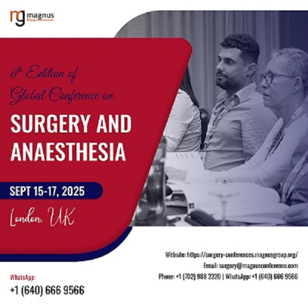 Join us for the 6th Edition of the Global Conference on Surgery and Anaesthesia (GCSA 2025), a dynamic hybrid event taking place from September 15-17, 2025 in London, UK. This premier Surgical Innovations Conferences 2025, under the theme “Global Perspectives on Surgical and Anaesthetic Advances”, unites the brightest minds in the field of surgery and anaesthesia to explore the latest advancements, share innovative practices, and engage in meaningful discussions that shape the future of healthcare.