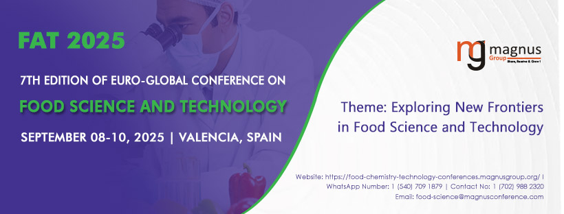 Join us at the 7th Edition of the Euro-Global Conference on Food Science and Technology (FAT 2025), set against the backdrop of Valencia, Spain, from September 8-10, 2025. This year’s Food Science Conferences 2025 will explore the theme of “Exploring New Frontiers in Food Science and Technology”, providing a platform for groundbreaking discussions and innovations in the food sector.