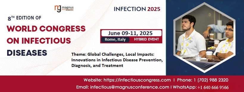 The 8th Edition of the World Congress on Infectious Diseases, known as Infection 2025, is set for June 9-11, 2025, in the captivating city of Rome, Italy. Under the theme “Global Challenges, Local Impacts: Innovations in Infectious Disease Prevention, Diagnosis, and Treatment,” this conference will address the latest challenges and breakthroughs in combating infectious diseases on both global and local scales.